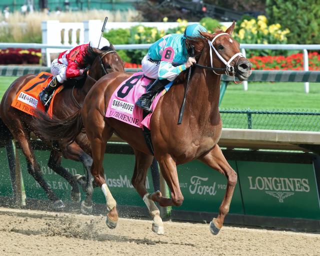 LOUISVILLE, KY (Friday, Sept. 4, 2020)Michael Dubb, Monomoy Stables, The Elkstone Group and Bethlehem StablesMonomoy Girl, the champion female runner of 2018, continued to show her brilliance as she cruised to a 1 ¾-length victory over pacesetting Lady Kate in the 35th running of the $500,000 La Troienne Presented by Oak Grove Racing & Gaming (GI) for fillies and mares.