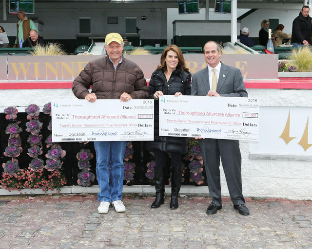 Churchill Downs Racetrack and its horsemen presented checks totaling $55,000 to the Thoroughbred Aftercare Alliance (“TAA”) between races on Friday at Churchill Downs.