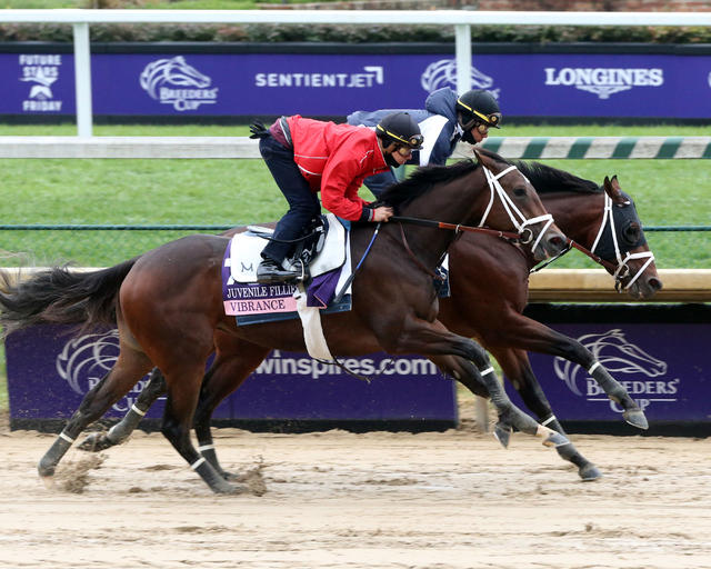 Tyler Gaffalione was aboard Eclipse Thoroughbred Partners and Mr. and Mrs. Jim Daniell’s Vibrance, who finished second to Bellefina in the Chandelier (GI) in her most recent start. John Velazquez will have the Breeders’ Cup mount.
